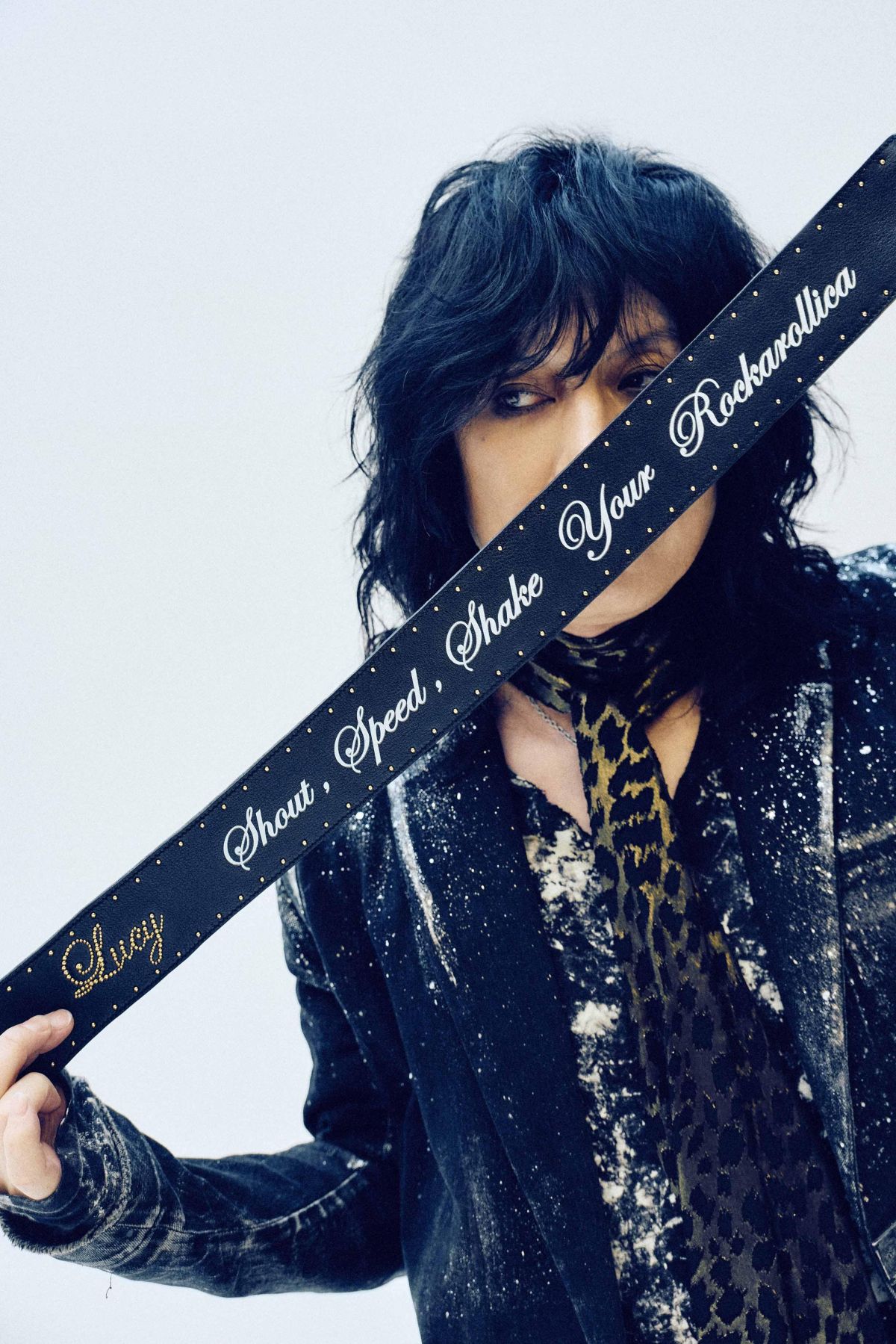 ※「PUNK THE LUCY」、「からっぽの宇宙.」のミュージックビデオ撮影で実際に使用したレザースタッズブランド・Modern Piratesのハンドメイドのオリジナル・ギターストラップを額装してプレゼント