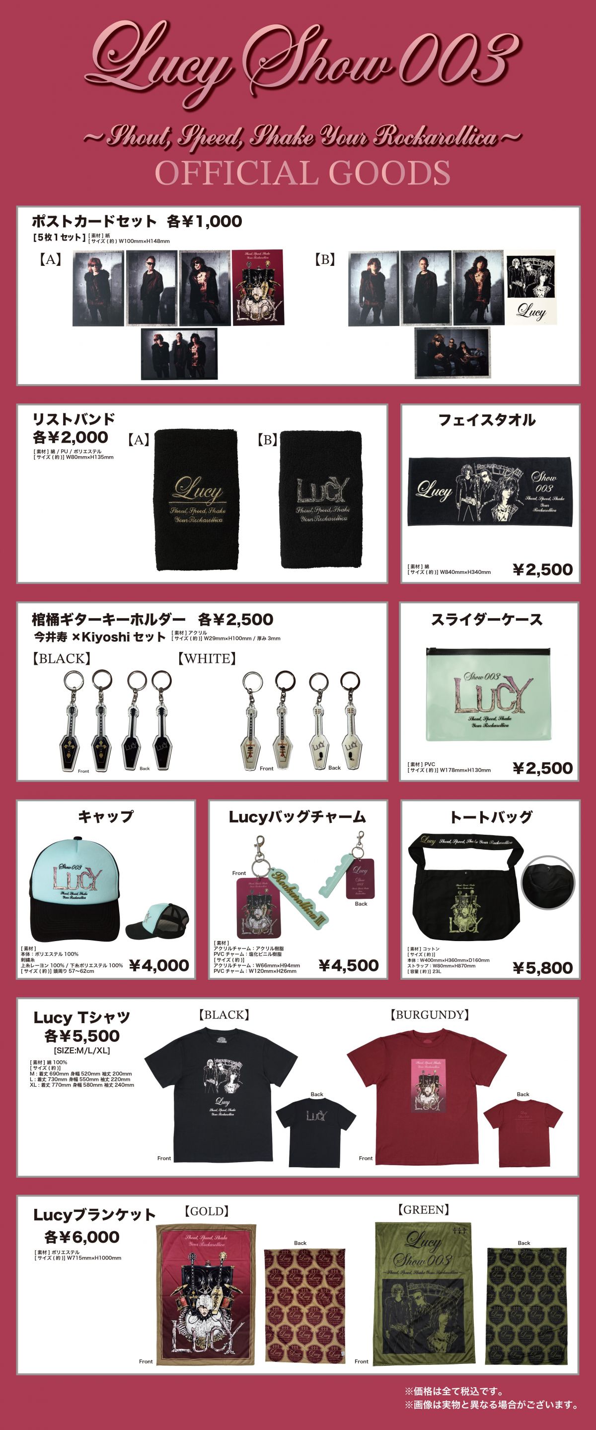 4月26日(日)から開始となるライブツアー「Lucy Show 003 ~Shout, Speed, Shake Your Rockarollica~」のオフィシャルグッズを公開!